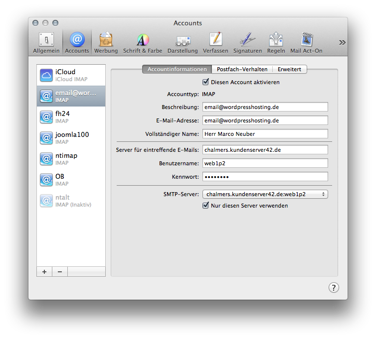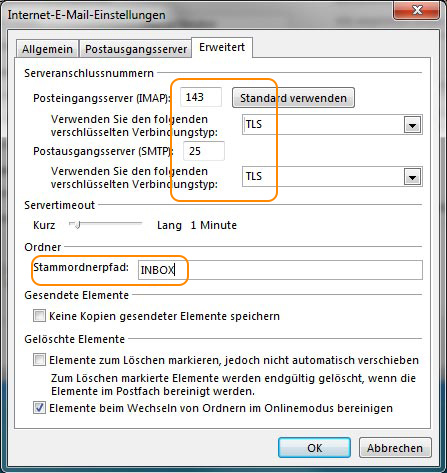 | IMAP | servername.kundenserver42.de | Port 993 |