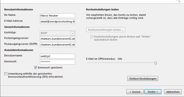 Wenn Sie Ihren Computer wechseln, müssen Sie nur Ihre Zugangsdaten eingeben und Ihr Postfach ist so eingerichtet, wie Sie es gewohnt sind. Weiterhin sollten Sie den Verbindungsaufbau per SSL und /oder TLS verschlüsseln. Keine Angst – hier zeige ich wie einfach das ist.