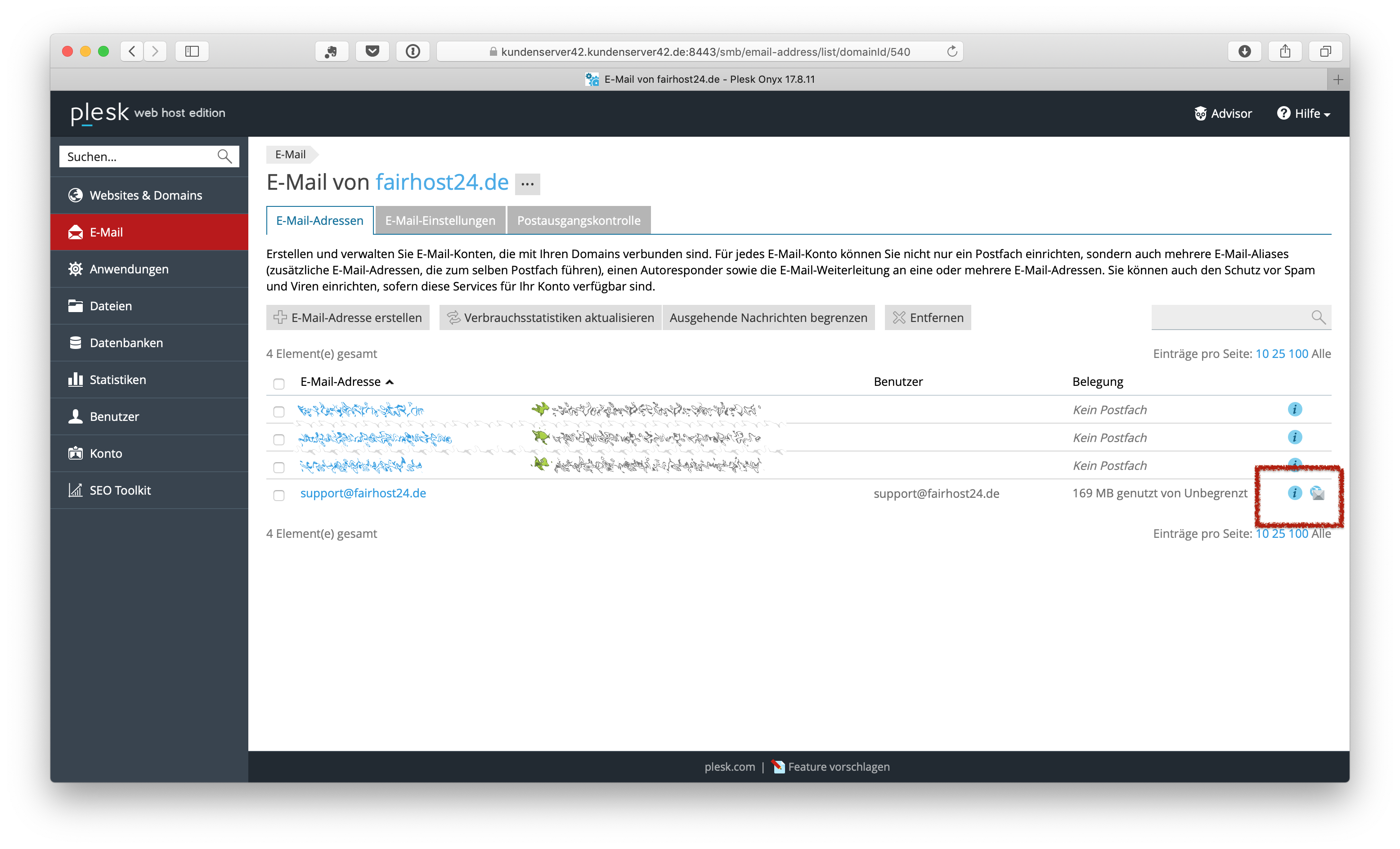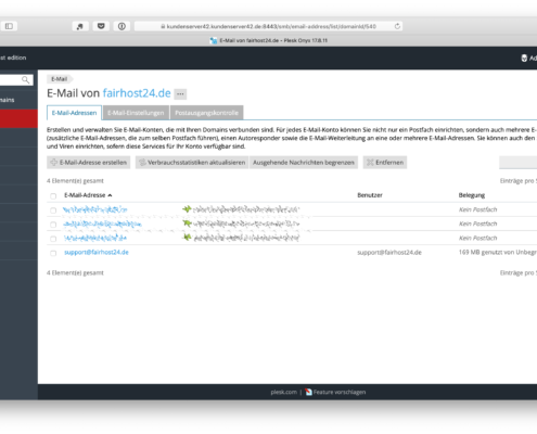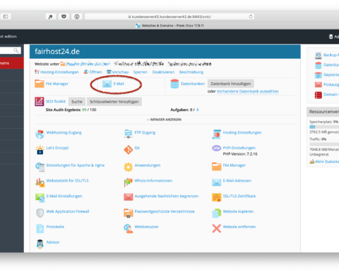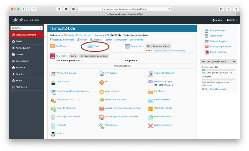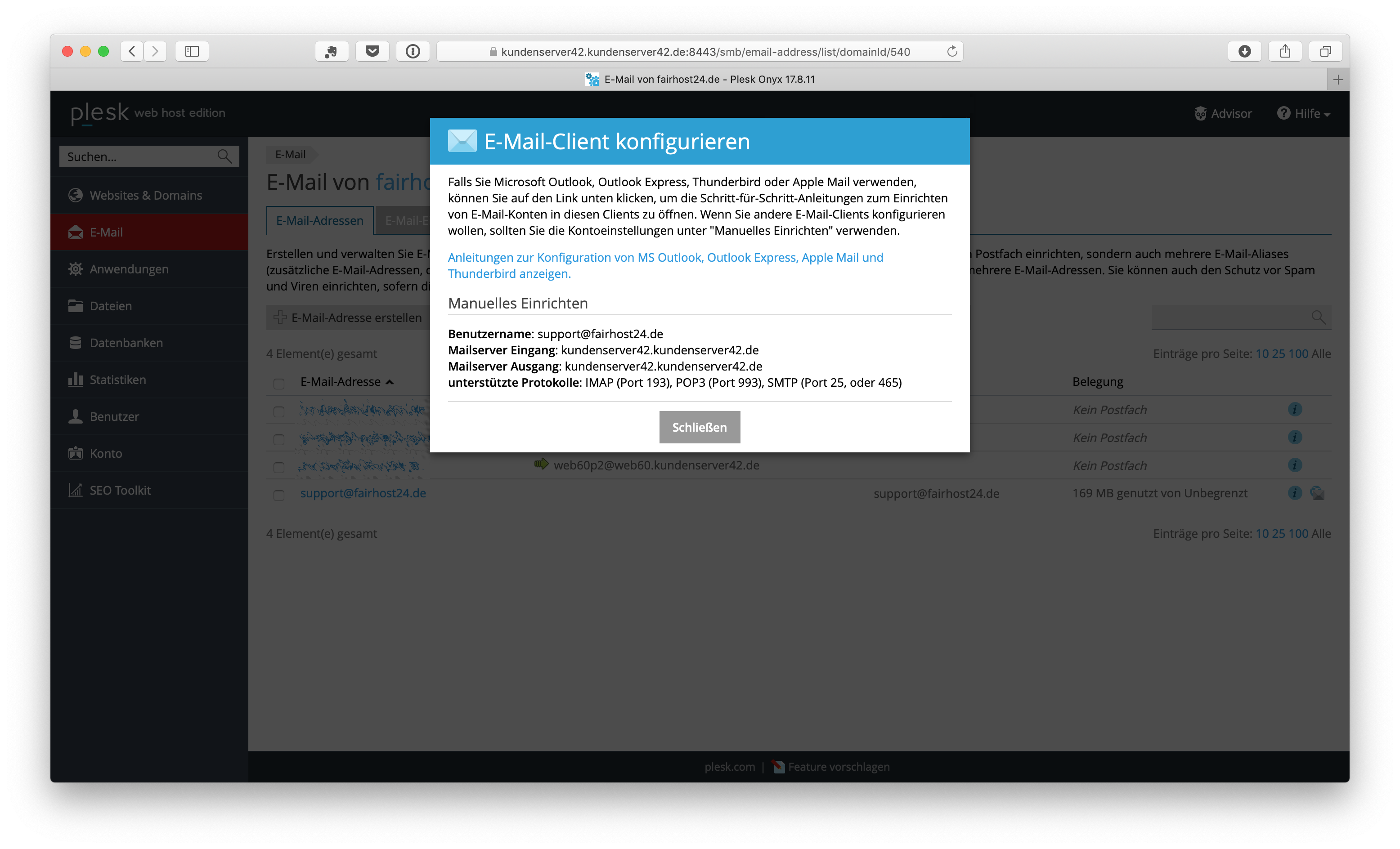 Loggen Sie sich in das Plesk ein und lesen die Zugangsdaten ab.