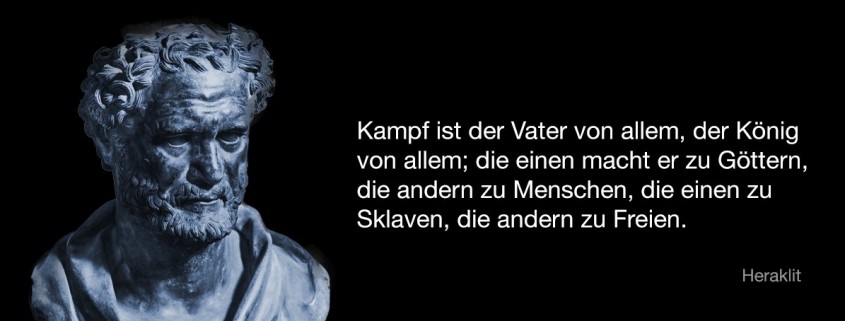 Kampf ist der Vater von allem, der König von allem; die einen macht er zu Göttern, die andern zu Menschen, die einen zu Sklaven, die andern zu Freien.