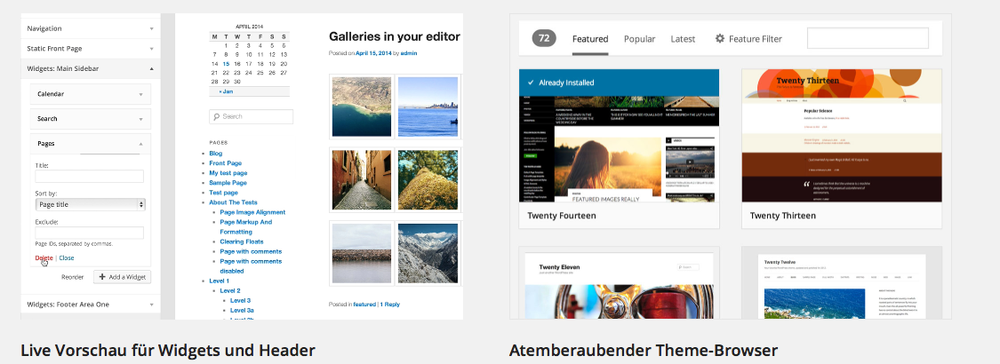 - Live-Vorschau für Widgets, Themes und Hederanpassungen